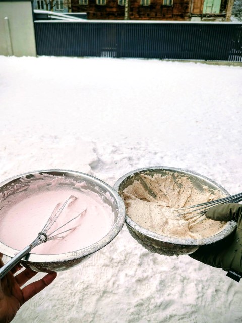 Protams, arī mēs, čaklās “Bitītes”, gribējām pārbaudīt, vai mums pietiek pacietības, lai paši uztaisītu šī gada populārāko saldējumu, kurš gatavots sniegā.