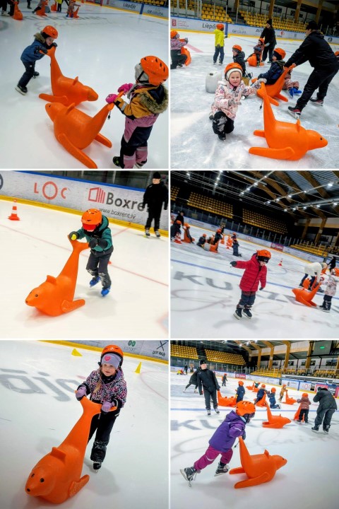 Treneri mums mācīja kā pareizi piecelties, kā slidot, pildījām dažādus uzdevumus un vienkārši izbaudījām laiku uz ledus ![]()